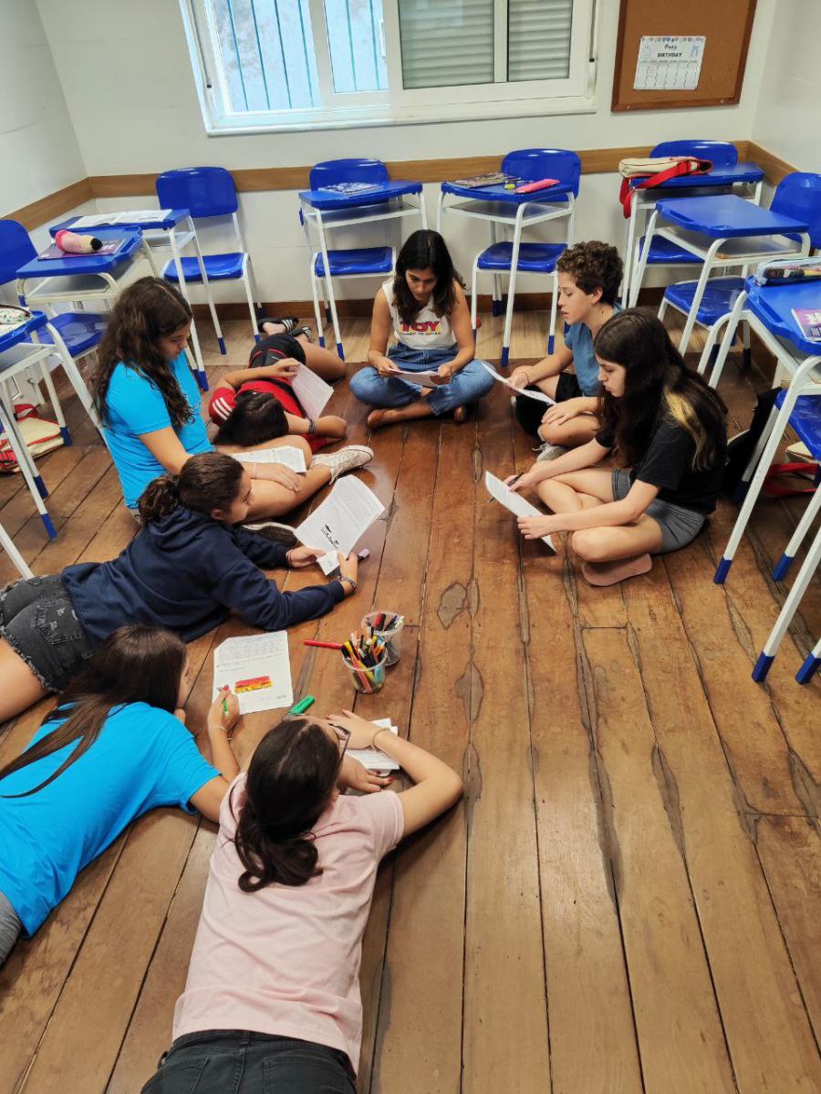 Para o aprimoramento da expressão oral, os adolescentes são estimulados não só a compartilhar suas experiências pessoais com o grupo, como também a debater temas atuais.